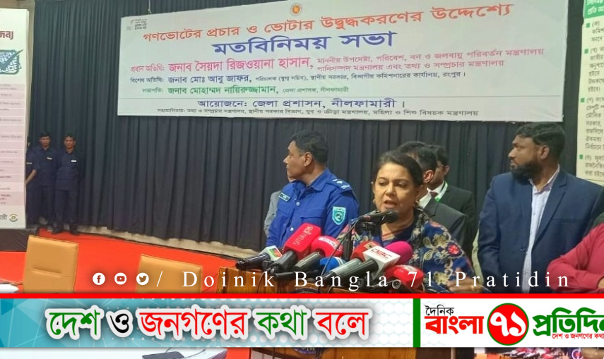 রবিবার (১৮ জানুয়ারী) বিকালে গণভোট ও ত্রয়োদশ জাতীয় সংসদ নির্বাচন উপলক্ষে নীলফামারী জেলা প্রশাসন আয়োজিত গণভোটের প্রচার ও ভোটার উদ্বুদ্ধকরণ ও জনসচেতনতা বৃদ্ধির জন্য জেলা শিল্পকলা অডিটোরিয়ামে এক মতবিনিময় সভায় প্রধান অতিথির বক্তৃতায় তিনি এসব কথা বলেন।