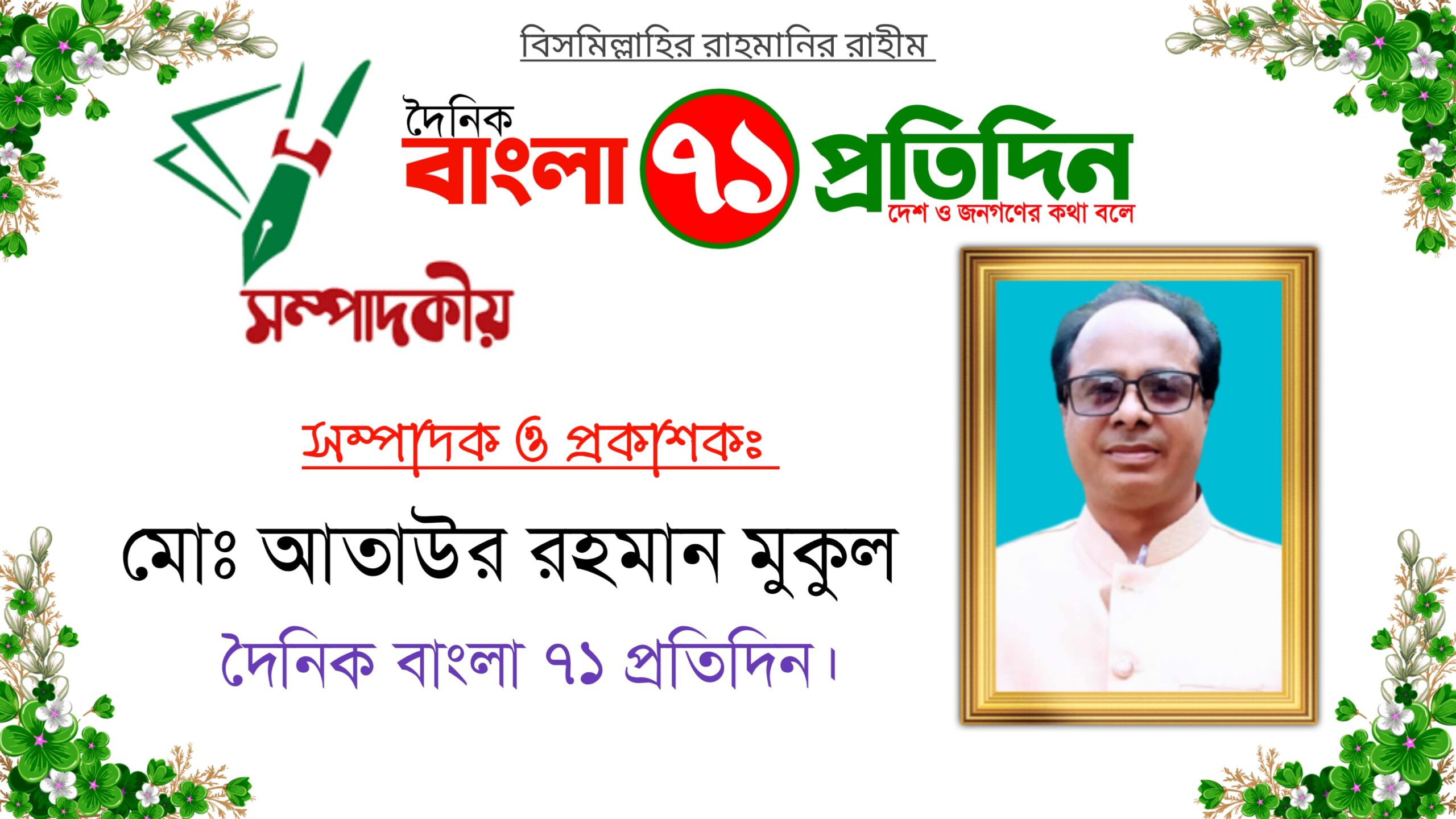 সম্পাদক ও প্রকাশক মোঃ আতাউর রহমান মুকুল